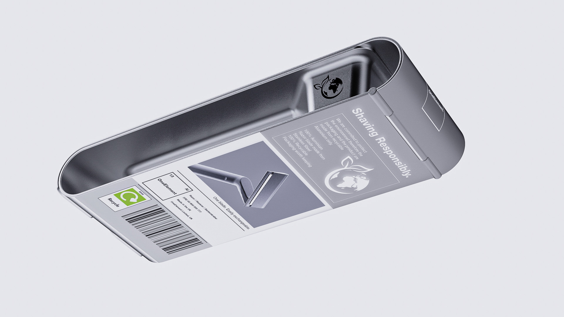 Sustainable circular metal packaging for shavers. Won the 2021 ALUPRO Starpack Award.