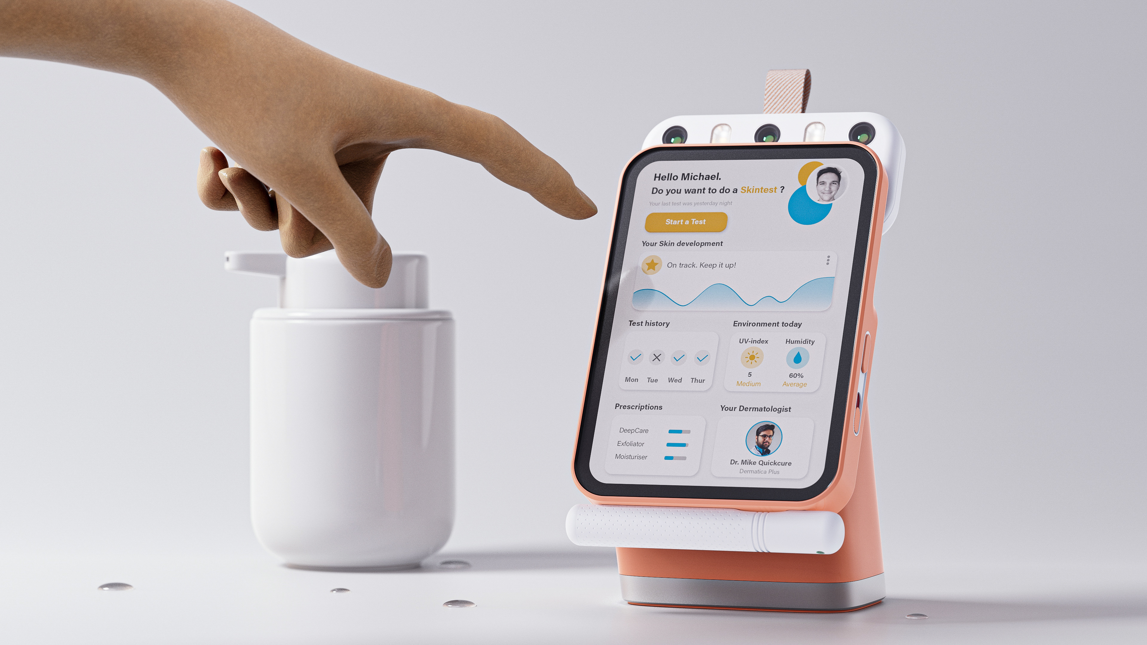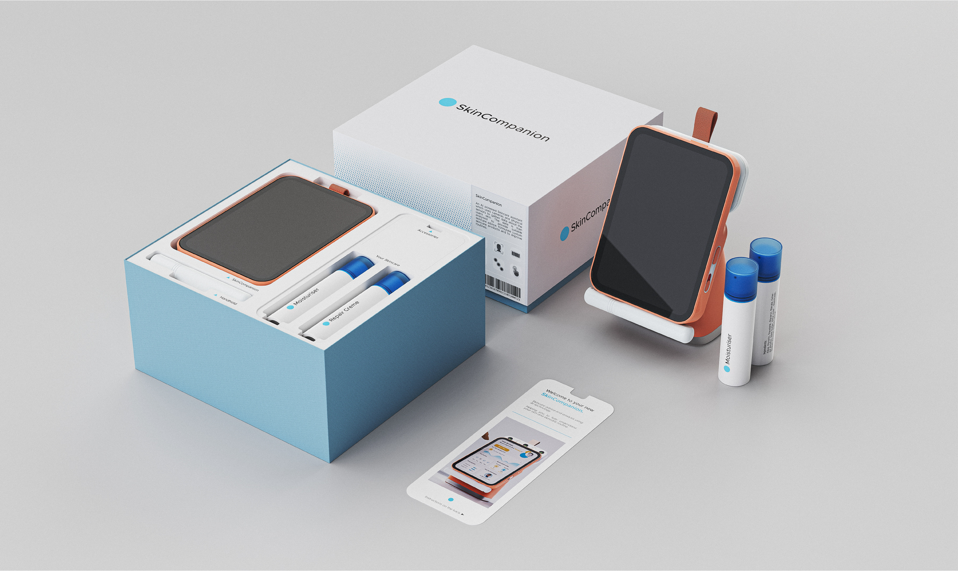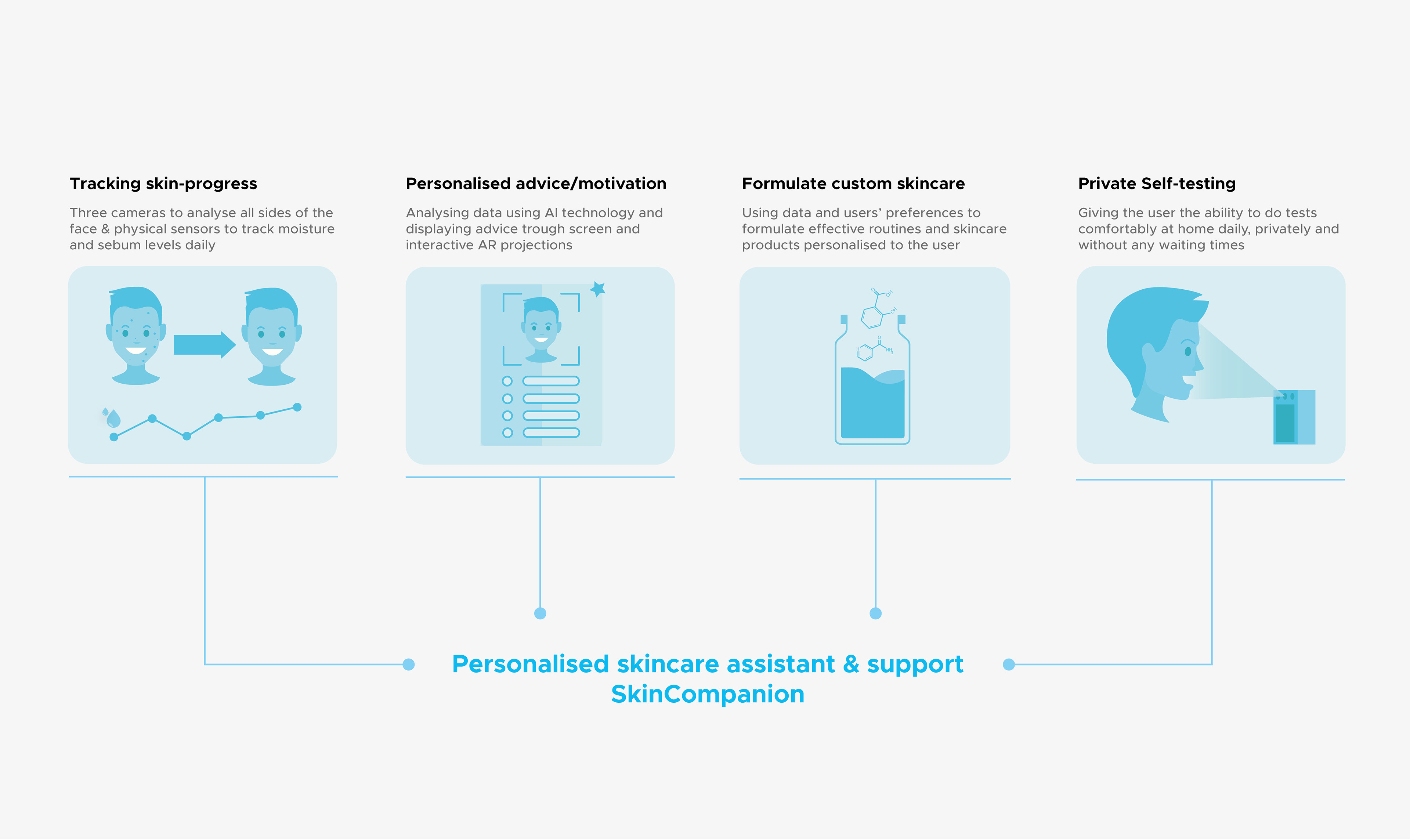 SkinCompanion is an AI-powered Skincare assistant which uses cameras and physical sensors to gather data about the users skin. The data is analyzed to provide skincare advice, formulate custom skincare products and to improve skincare-routines.